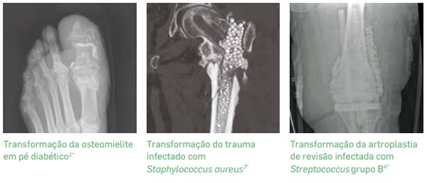 É o parceiro perfeito para tratar infecções, sendo a única matriz de cálcio aprovada para mistura com antibióticos para o tratamento de infecções bacterianas, aprovado para ser misturado com antibióticos líquidos e em pó e pode ser aplicado diretamente em áreas infectadas e não infectadas.